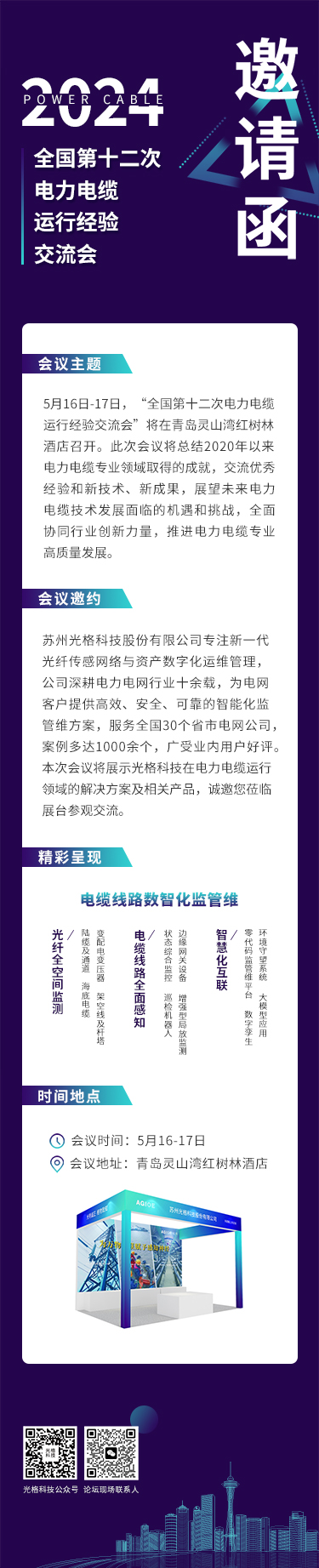 精彩光格 | 全國第十二次電力電纜運行經(jīng)驗交流會(huì )即將在青島開(kāi)幕,誠邀關(guān)注