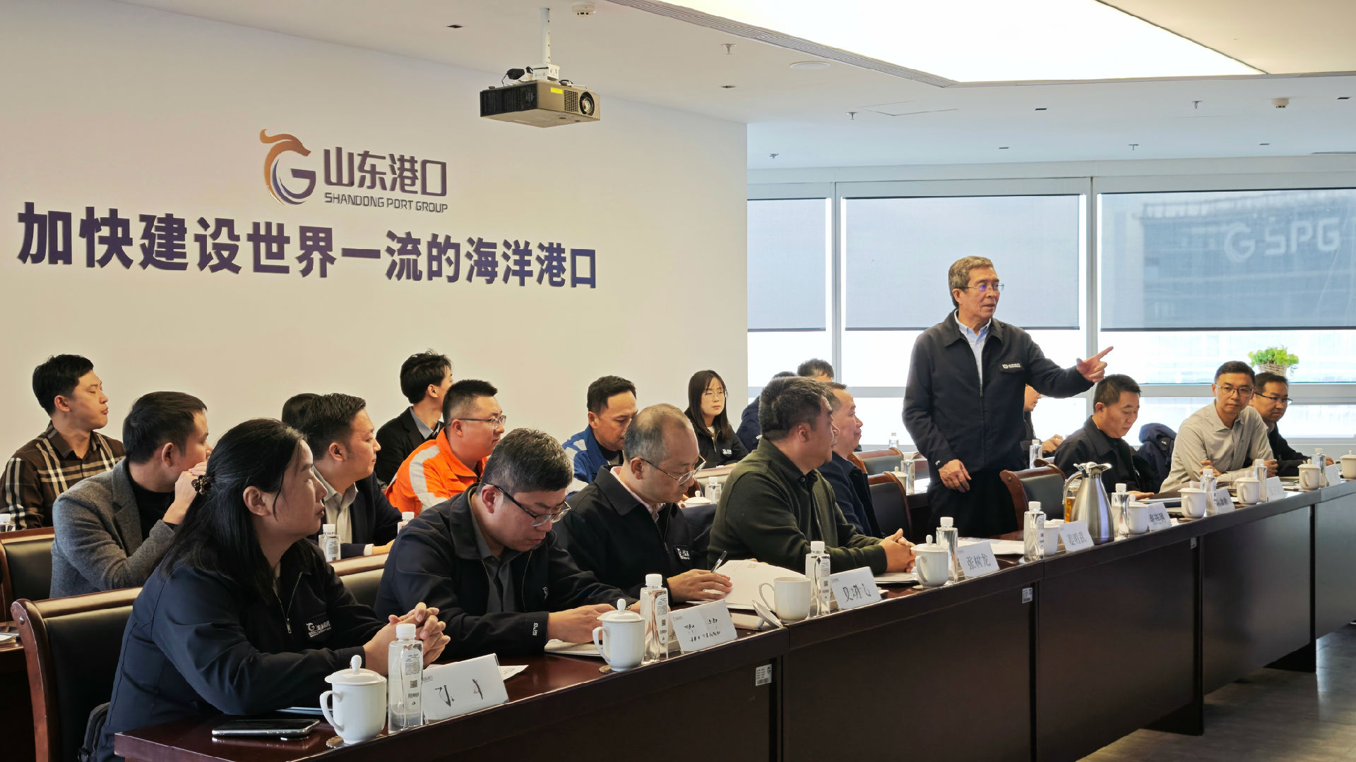 山東港口首席科學(xué)家張連鋼帶領(lǐng)山東港口青島港全自動(dòng)化集裝箱碼頭公司、港區公司、裝備集團及科技集團等領(lǐng)導及技術(shù)專(zhuān)家,光格科技董事長(cháng)姜明武、副總經(jīng)理張樹(shù)龍帶領(lǐng)技術(shù)團隊出席了本次會(huì )議。