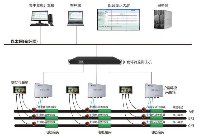 ACS210電纜護套環(huán)流監測系統由護套環(huán)流傳感器、護套環(huán)流采集器等組成,適用于6.6kV及以上的輸配電力電纜護套環(huán)流在線(xiàn)監測,能實(shí)時(shí)監測高壓電纜線(xiàn)路接地電流異常情況,還可降低電纜線(xiàn)路交叉互聯(lián)線(xiàn)、接地線(xiàn)、交叉互聯(lián)箱、接地箱等被盜的風(fēng)險。支持遠程查看功能,給維護人員手持式設備上發(fā)送實(shí)時(shí)監測數據。很大程度上減少了電纜運行維護人員的工作量,對電流異常的檢測點(diǎn),能夠做到實(shí)時(shí)關(guān)注,達到預防突發(fā)事故的目的。